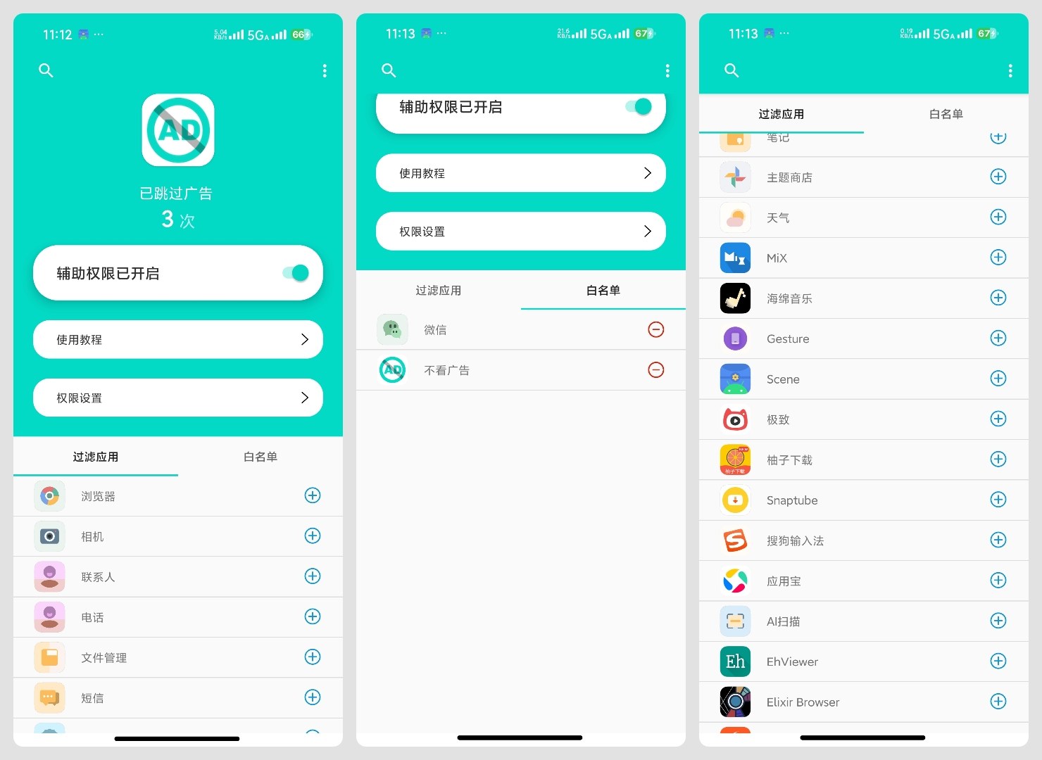 白名单:可自定义需要保留的广告应用。